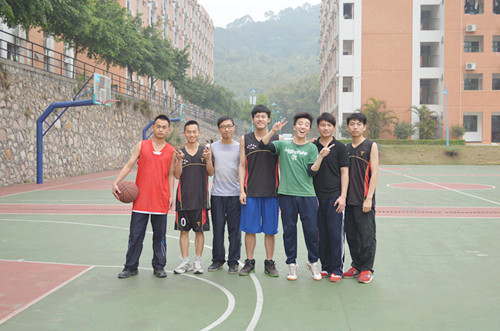图为11电气争先班宿舍成员篮球赛后合影留念