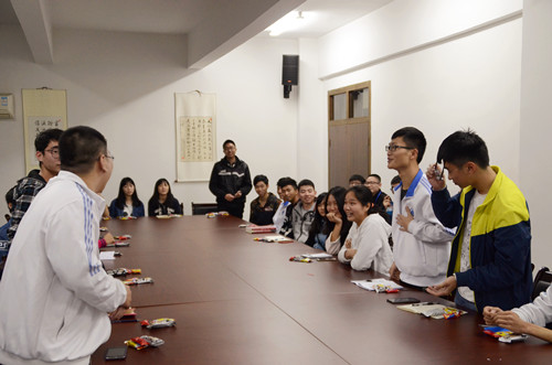 随后,在主持人的引导下,老师们和心理委员们围着圆桌一起参与了“说特点记名字”和“大风吹,小风吹”两轮游戏。游戏中,大家打破了来自不同年级的陌生感,踊跃讲出自己的爱好,也认真记下身边人的闪光点和特点,促进了相互交流和了解,现场氛围非常火热。游戏环节之后,大家共同观看了一段小视频,该视频讲述了在异国街头的一群陌生人打破陌生感、通过牵手协作、拿到免费巧克力,最后共同分享收获和喜悦的故事,使得在场同学频发感触。来自2014级电气工程及其自动化8班的刘永君说,“看了视频之后很感动,虽是甜蜜的诱惑,但是却消除了人与人之间的冷漠与隔阂,大家携手努力、互帮互助才会有所收获。”