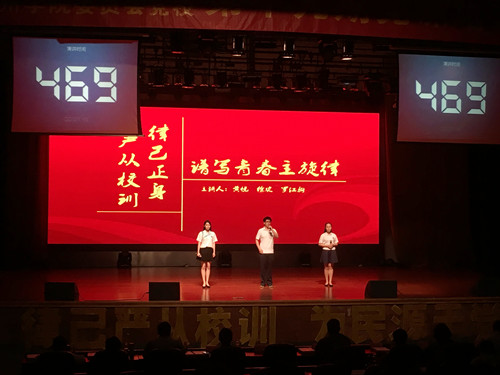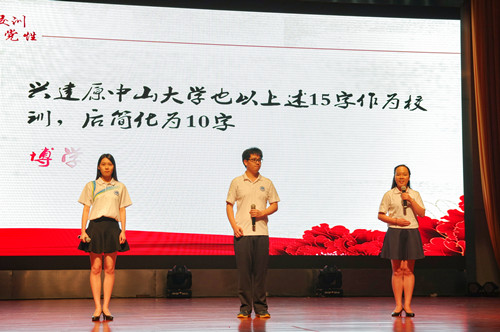 随后,来自12个学院的学员代表按抽签分组的顺序上台演讲。土木工程学院的学员们以生动有趣的对话为观众阐释“博学”的意义;电气工程学院的学员们通过题为“严从校训,律己正身”的生动演讲深刻剖析电气学子对“慎思”的理解;计算机工程学院的学员们取材于社会,通过充满趣味的话剧表演,引发观众对于社会舆论现象的思考,告诫青年学子应该抛开谬论、做到“明辨”;管理学院的学员们表演了以校园生活题材的精彩话剧,表达出青年学生应该“笃行于心,行胜于言”。各学院代表队的学员们通过感情充沛、生动真挚的演讲和表演将现场氛围一次次推向高潮,现场不时迸发出阵阵掌声。