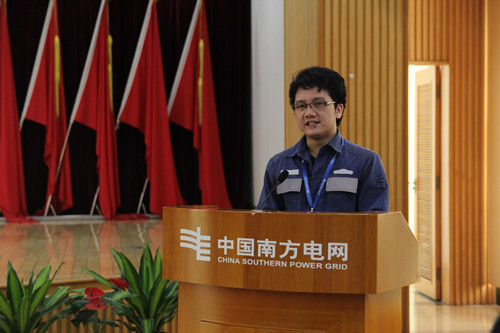 随后,目前于花都供电局工作的我校电气工程学院2015届毕业生江艺作为代表发言,谈及其个人从学校到企业的转身。江艺分别谈及自己对于企业的认识、入职后的体验、以及个人在实际工作中心态和行动双层次的转变,以其个人作为华广毕业生的身份为例,向到访的我校学子传递经验,他说“作为华广学生在人才济济的世界五百强企业中脱颖而出并不那么容易,师弟师妹们一定要抓住在校学习的机会,争取多到供电所实习,打好我们应用型人才这张牌。”