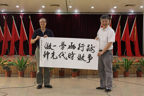 随后,电气工程学院党总支宣传委员李志锋介绍了电气工程学院党总支的基本情况和“两学一做”学习教育活动的工作方案。张尧向花都供电局党委赠送了手书的墨宝“践行两学一做争做时代先锋”,期望双方能够在交流中共学习、同进步。
