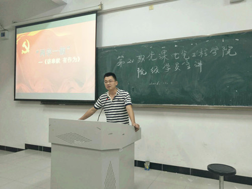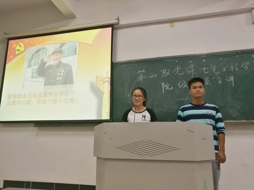 2016年11月1日晚19时,电气工程学院第20期党课培训班学员主讲党课在A3-205顺利举行。电气工程学院学生第一党支部书记戴杰、院团委副书记伏莹、陈凤宜及第20期党课培训班全体学员出席本次活动。