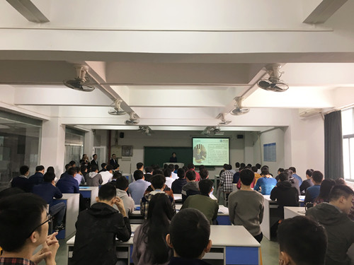 最后,双方在众多毕业生的见证下进行了就业与实习基地的签约和授牌仪式。该司于签约仪式后举行了一场针对我校电气专业的专场宣讲会,逾百名来自我校电气工程及其自动化专业的毕业生参加了宣讲会。