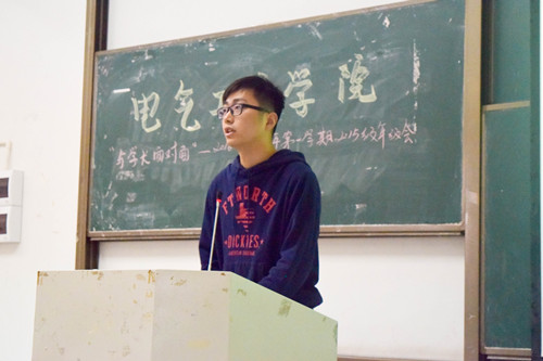 3月16日下午,电气工程学院2015级在A5-201召开“与学长面对面”为主题的年级会议。2015级电气工程及其自动化1、2班班主任晏黑仂老师、3班班主任符红勋老师、4班班主任杜芸强老师、原我院2012级毕业生现华南理工大学电力学院研一在读的佘天博师兄、2013级谭颖怡师姐出席了会议。本次会议由2015级辅导员伏莹老师主持。会议的主要环节有:学期回顾、经验分享和老师寄语。