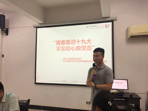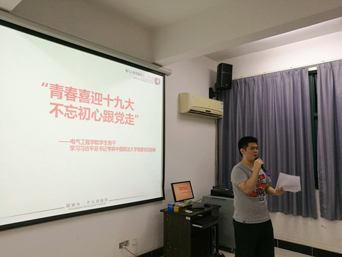 陈凤宜老师表示,习总书记提到各级领导干部要做尊法学法守法用法的模范,以实际行动带动全社会崇德向善、尊法守法;我们在要重视法学教育,生活中也要遵守规章制度,以身作则;同时还应该树立与时俱进的思想意识。伏莹老师在学习会上表示,大局意识和家国情怀是新时代人急需的精气神,她勉励各位委员们要多多培养集体主义精神,从根本上去领会“跟党走”的深刻涵义。戴杰老师在学习会总结发言时表示,电气团学当前的一项重要任务就是要自觉主动地把“一学一做”抓实抓好,要通过组织学生骨干学习会座谈会形式,提升组织成员的思想政治素质和理论水平;要认真做好团学换任等工作,以饱满的热情和新的工作成绩迎接党的十九大胜利召开。