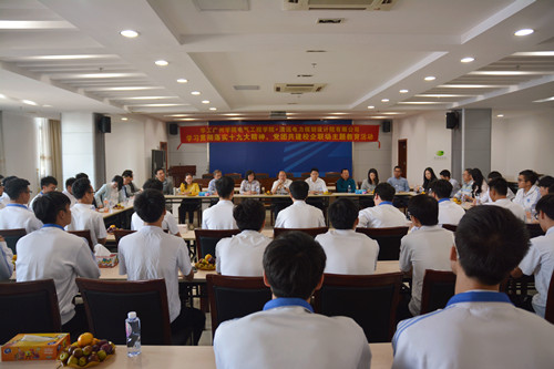 为学习贯彻落实十九大精神、开展校企合作、党团共建,11月2日下午,电气工程学院党总支联合清远电力规划设计院有限公司(下称“设计院”)党支部开展了一场以“学习贯彻落实十九大精神,党团共建育人才”为主题的党建主题实践活动。