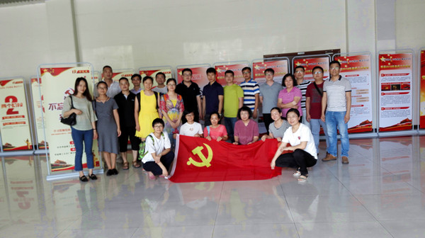 会后,全体教职工党员到图书馆一楼大厅参观“不忘初心 牢记使命”——学习贯彻党的十九大报告精神图片展。