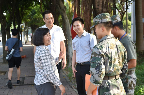 在2018级新生军训队伍彬彬有礼的称呼声下,胡惠兰亲切慰问了正在承训的教官和参训的学子,带领送清凉队伍给每人送上一份“清凉”,送上一份凉意的温暖!