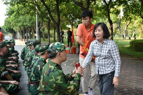 在2018级新生军训队伍彬彬有礼的称呼声下,胡惠兰亲切慰问了正在承训的教官和参训的学子,带领送清凉队伍给每人送上一份“清凉”,送上一份凉意的温暖!