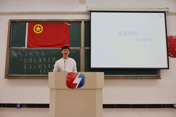 接下来,是推文培训,由六届一任技术团新媒体总监陈庆森为现场同学进行推文培训,从推文的四要素为切入点进行展开。培训内容主要包括推文排版,字体格式等方面。