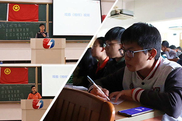 会议在唐豪彬致辞后,全场同学观看《榜样》学习视频。