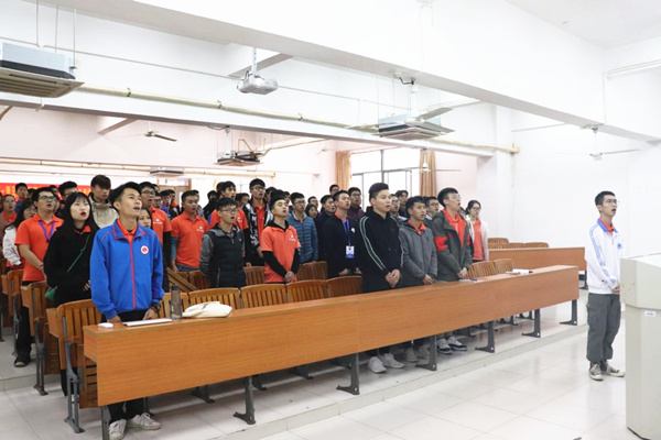 会议伊始,全体成员起立奏唱团歌。由六届一任学生会主席唐豪彬致辞,他希望通过本次青年马克思培训能够提升干部的服务意识,提高综合能力,推进团学学生干部委员和干事们的队伍建设,不忘作为学生干部的初心,更好为同学们服务!