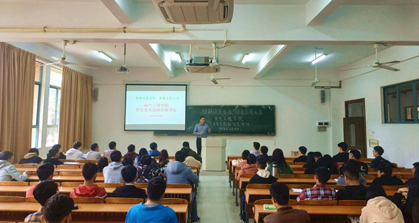 为更好地建设学习型、创新型党支部,加强党支部成员间的思想交流,2月28日中午,电气工程学院学生第二党支部举办的“创新改变生活,创意点亮人生”学生党员创新创意讲坛在A1-102顺利召开。出席此次活动的有电气工程学院党总支副书记林斌、学生第二党支部刘建斌老师及90余人学生党员、入党积极分子等。