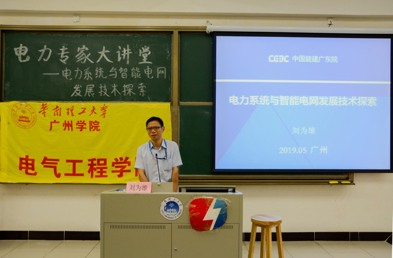 为了学习贯彻习总书记在纪念五四运动一百周年大会的重要讲话精神,弘扬青年五四精神,培养专业实践人才,增强学生对电气专业的认识。5月22日下午,电气工程学院2019年电力专家大讲堂“电力系统与智能电网发展技术探索”于A5-101举行。出席本次讲堂的嘉宾有:中国能源建设集团广东省电力设计研究院有限公司广东天联电力设计有限公司总工程师刘为雄教授、电气工程学院副院长胡惠兰、郭培虹,学院部分教师以及17级全体学生等。