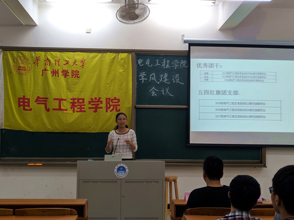 郭培虹为2018-2019学年荣获各类荣誉称号的集体与个人表达赞扬与祝贺,她表示,学校的人才培养与学风建设之间的关系密不可分,学风建设是培养高素质人才的关键。她通过强调《电气工程学院学风建设的管理规定及评比方法》等内容,对全体班级干部提出了工作要求。她希望,每位班级干部都能做到学业有成,并在自己的干部生涯中得到锻炼,工作能力有所提高,在大学中取得理想的成绩。