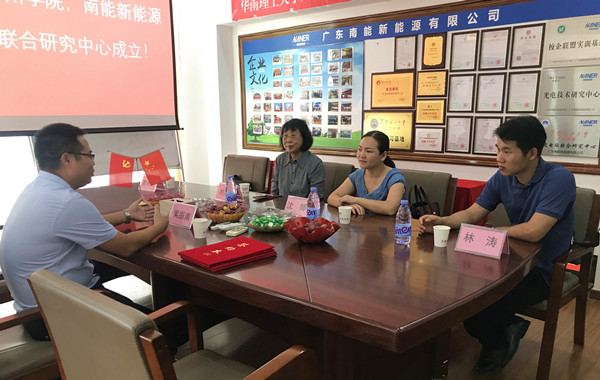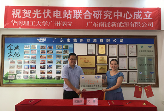为搭建校企合作平台,加强科研合作力度,共育应用型本科新能源专业人才,9月29日下午,电气工程学院副院长沈娜、新能源科学与工程学科带头人韩凤琴教授及新能源教研室教师代表一行4人赶赴广东南能新能源有限公司,签署《光伏电站联合研究中心框架协议》并挂牌。广东南能新能源有限公司总经理梁振南及相关负责人热情接待了沈娜一行。