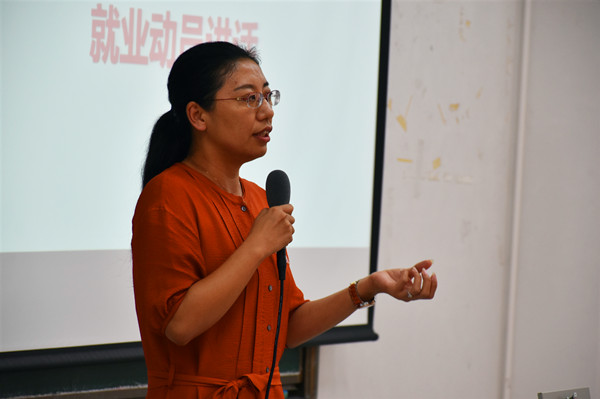 最后,郭培虹副院长作就业动员讲话。她强调了学业的重要性,要求毕业生要“先毕业再就业”。她指出,毕业生要把握好学院的信息资源和机会,利用好择业期政策。同时她提出在职场中要学会“人、事、利”,做好每一项工作,处理好人际关系,相信付出与获得成正比,坦然面对并接受工作中的挑战,努力工作,快乐付出。