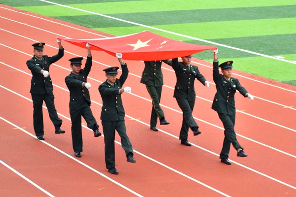 操场上,伴随着振奋人心的音乐,电气工程学院的院旗方阵、彩旗方阵、班级方阵整装出发,他们迈着矫健的步伐,保持着整齐划一的队形,宣告着电气人特有的风姿,展示出电气人的活力与信心。
