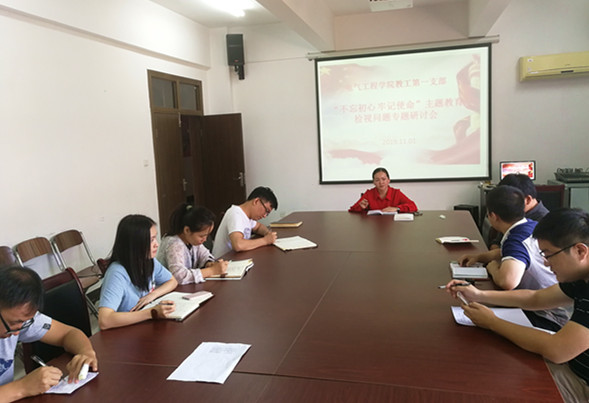 为学习贯彻习近平总书记“不忘初心,牢记使命”主题教育工作会议精神,10月31日下午,电气工程学院教工第一党支部在B6-403开展“直面问题,提高教学科研水平”主题研讨会。电气工程学院教工第一党支部书记沈娜及支部全体党员参加了本次学习会议,会议由沈娜主持。