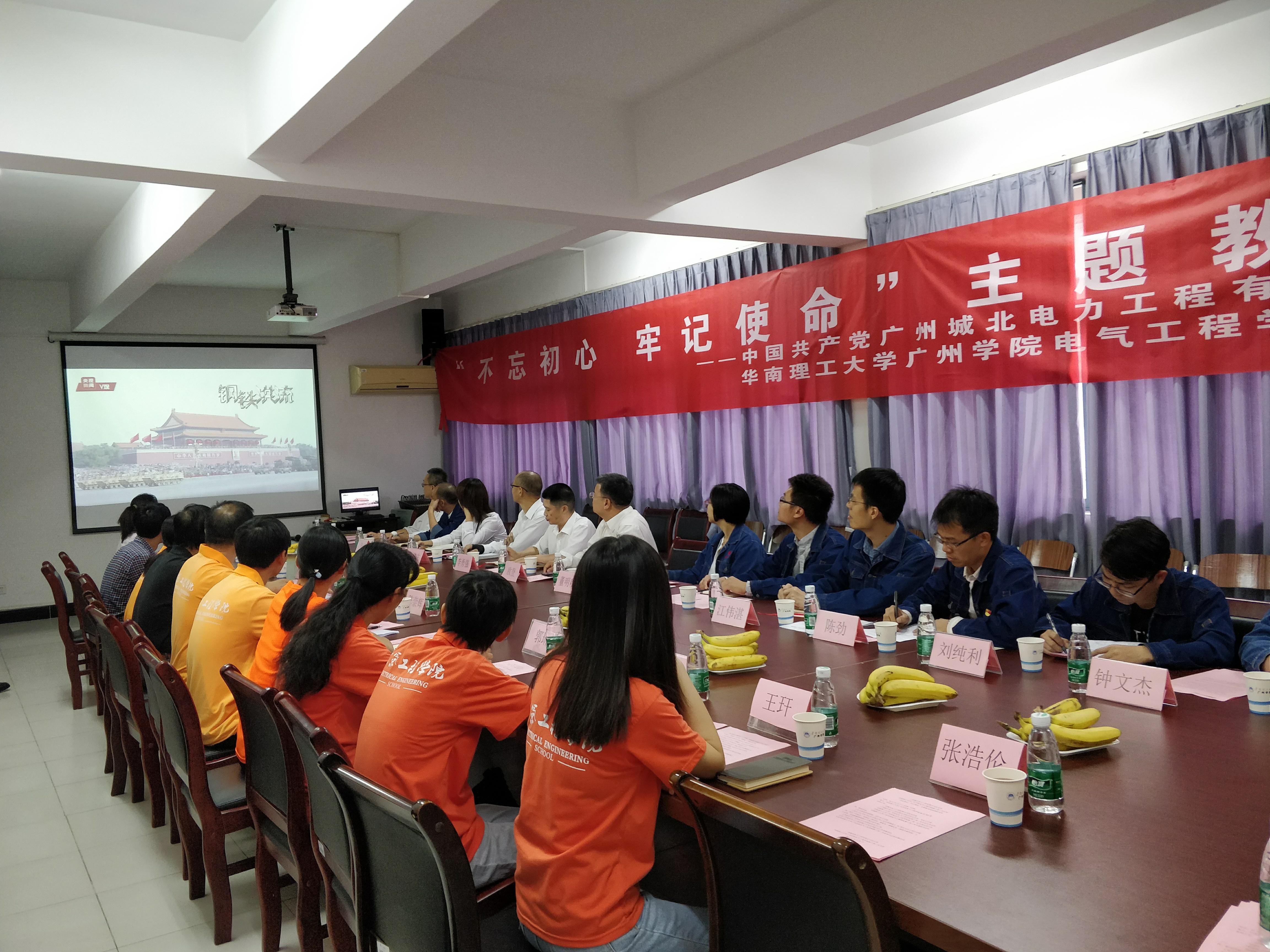 10月31日下午,为进一步落实“不忘初心,牢记使命”主题教育活动,华南理工大学广州学院电气工程学院教工第二党支部联合广州城北电力工程有限公司党支部开展“不忘初心,牢记使命”主题教育活动,结合工作实际,坚持问题导向,在工程管理、人才培养、科技创新和技能水平等方面进行“守初心、担使命、找差距、抓落实”学习交流分享会。电气工程学院副院长沈娜、学校实验室中心主任胡少强、教工第二党支部书记郭志雄及支部全体党员、广州城北电力工程有限公司党支部副书记、副总裁李勇强、副总裁黎健生以及党员代表参与了本次主题教育活动。