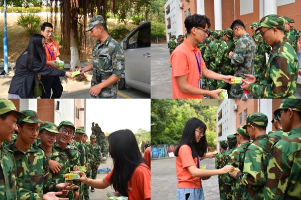 随后,电气团学的同学们为教官和新生送上凉饮,对他们的辛苦的表示感谢。通过送清凉的方式,给予2019级军训同学激励与关怀,也让同学们感受到学院对同学们的关心和照顾。