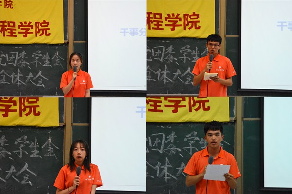 最后,由各部门干事上台分享工作感受,他们在分享过程中充分表现出了对部门工作的热爱,表达了对部长悉心栽培的感激,说出了对部门未来的美好憧憬。其中一位委员说到,“在团学中,可以学习到各种知识,增强自己的能力,还能增进和同学们的友谊,从部门工作之中锻炼自己。”