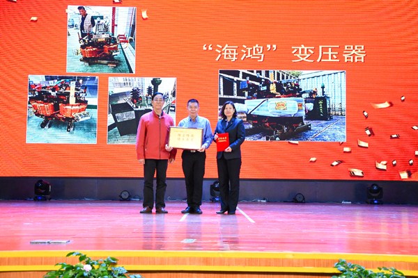 接着,由胡少强主任、翟丽珍女士和林永贤先生上台进行“海鸿”变压器赠与仪式。