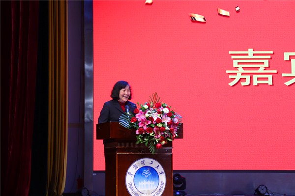 大会首先进行了视频展播,视频回顾了电气工程学院的发展进程,展示了学院自成立到今天所取得的各项成果,表示了对支持学院发展企业的感谢。视频过后,胡惠兰上台为本次大会致辞,她对莅临大会的各位嘉宾表示感谢,对海鸿电气有限公司、固源电力设计院、技搏电力工程有限公司对学院发展所提供的支持和帮助表示感谢,同时对支持学院学科建设的专家表示感谢。