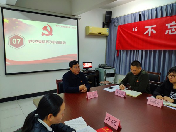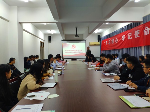 为深入学习贯彻习近平新时代中国特色社会主义思想,推进“不忘初心、牢记使命”主题教育工作,电气工程学院学生第二党支部于12月4日晚在B6-403召开专题组织生活会和民主评议大会。会议由电气工程学院学生第二党支部书记林斌主持,学校党委副书记杨兆禧、电气工程学院党总支委员沈娜列席会议,电气工程学院学生第二党支部全体党员与会。