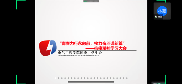 在学生干部培养方面上,学院于4月25日依托腾讯会议网络平台举行了青马工程系列活动——“青春力行永向前,接力奋斗谱新篇”主题抗疫精神学习线上会议。在会议上通过播放抗击疫情纪录片,让学生干部学习一线工作者不抛弃不放弃的精神,加强自身的使命感和责任精神。随后电气工程学院副院长郭培虹在会议上谈到,在本次抗击新冠肺炎疫情中我国所采取的措施获得了国际社会的普遍认同,我们应该为我国取得的阶段性成绩感到骄傲和自傲。同时,她对我院在本次疫情防控工作中积极参加抗疫志愿工作的同学给与了表扬和肯定。最后她希望全体学生干部能够不畏艰难困苦,不负国家新时代重托,坚定不移的跟党走,展现新时代大学生的青春活力!