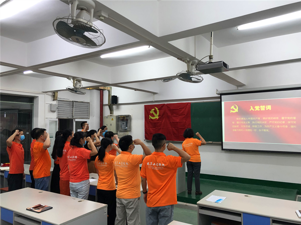 接着,全体党员在胡惠兰的带领下重温入党誓词,党员面向党旗,举起右手,庄严宣誓。党旗和党徽交相辉映,唤起了所有党员在入党时的记忆,气氛庄重热烈。