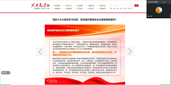 2019级电气五班班长在讲解了基本的诈骗案例和诈骗手法之后,向同学们分享了十九大报告学习中:有效维护国家安全主要有哪些要求?他向同学们分享到,习总书记在十九大报告中指出,国家安全是安邦定国的重要基石,维护国家安全是全国各族人民根本利益所在。我们作为大学生要从自己力所能及的事情做起,坚定捍卫国家利益,保护国家安全。
