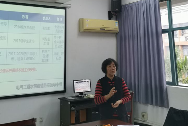 为贯彻落实教育部、省教育厅关于疫情防控与学生返校复学的决策精神,坚持科学精准防控,部署新学期主要工作。2月26日上午,电气工程学院在B6-403召开了新学期工作部署会议。学院党总支书记胡惠兰,副院长沈娜、郭培虹以及全体教职工出席了本次会议。