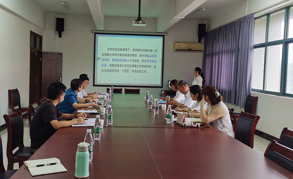 6月29日上午,学校教务处处长张星明、副处长许淑贞等一行4人赴电气工程学院调研,电气工程学院院长赵杰、副院长沈娜及教师代表接待了张星明一行。