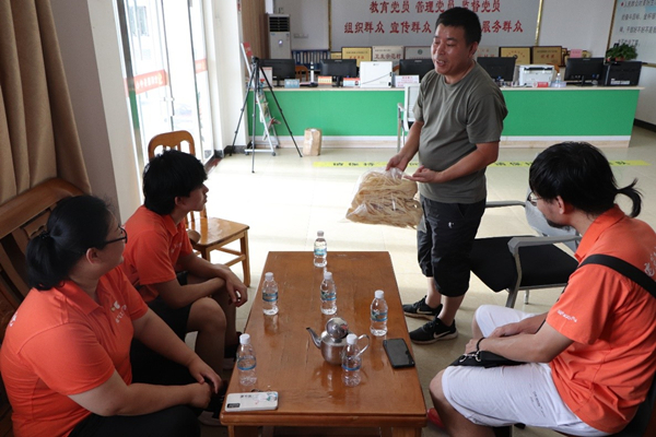 黄祖伟向实践团展示“灵潭腐竹”(张凯 摄)