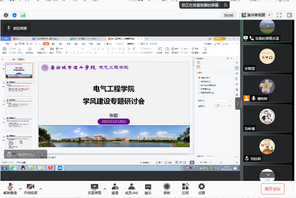 为深入贯彻落实《广州城市理工学院2021-2022学年度学风建设方案》,弘扬勤学笃行,建设优良学风,严肃考风考纪,12月20日下午,电气工程学院线上召开全院教职工学风建设专题研讨会暨期末考务工作会。