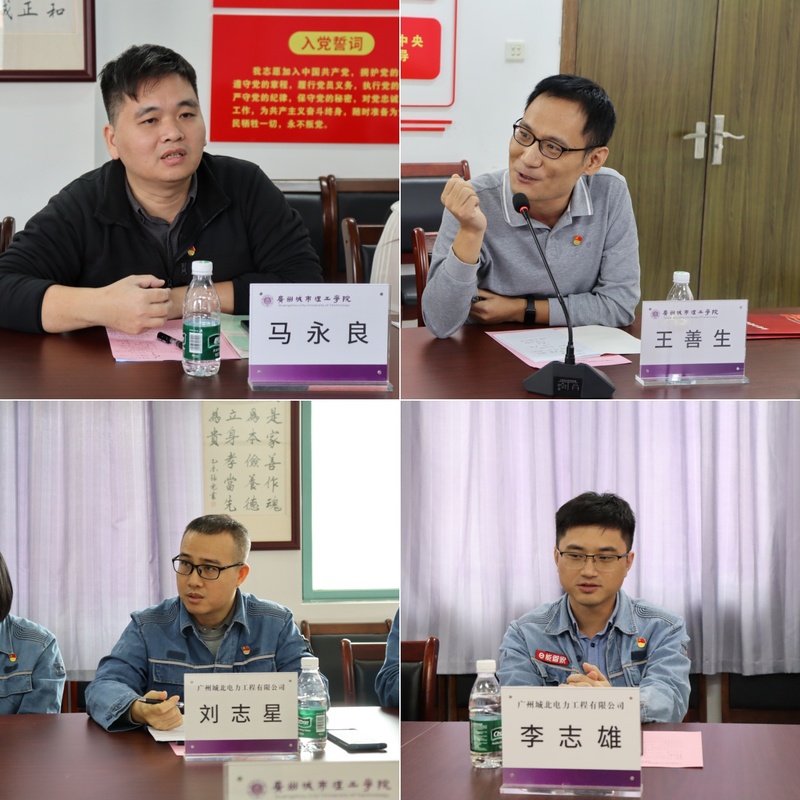 11月13日上午,广州城北电力工程有限公司(以下简称“城北公司”)赴我校电气工程学院参观交流,于B6-403室共同开展党建联建活动。城北公司党总支副书记、副总裁、工会主席肖义祥,党群工作部主任董明明,各业务部门总经理、主任及企业代表;电气工程学院党总支副书记符红勋,学院副院长、省级“双带头人”教师党支部书记工作室电气工程学院教工第一党支部书记沈娜,党支部成员代表,教师骨干代表共同参会。