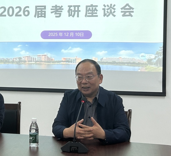 座谈会上,符红勋首先表达了对同学们坚持备考、勇于追梦的肯定与关心。她提醒同学们提前做好赴考的行程规划,注意考试期间的饮食健康与个人防护,以最佳状态从容应考。符红勋强调,考研不仅是知识的比拼,更是信息与资源的整合。她介绍了学院为考研学生搭建的支持网络。通过整合校内外专家与校友资源,后续还将为同学们提供面试指导、复试辅导与院校信息对接等全方位支持。她结合往年数据指出,学院近年考研录取人数稳步上升,整体形势积极向好,鼓励大家保持自信、轻装上阵。
