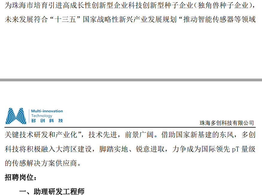 珠海多创科技有限公司招聘信息