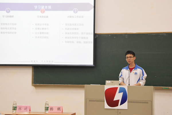 会议伊始,由李嘉琪发言。他从思想、工作、学习三个层面跟同学们分享了自身作为学生干部的经验。他说到,身为学生干部,要树立正确的价值观,在工作中不断提升自我,不断清晰对自身的认知,同时他希望同学们要顾好作为学生的本职工作——努力学习,做到纪律学习两手抓,在做学生干部的同时也不把学习成绩落下。