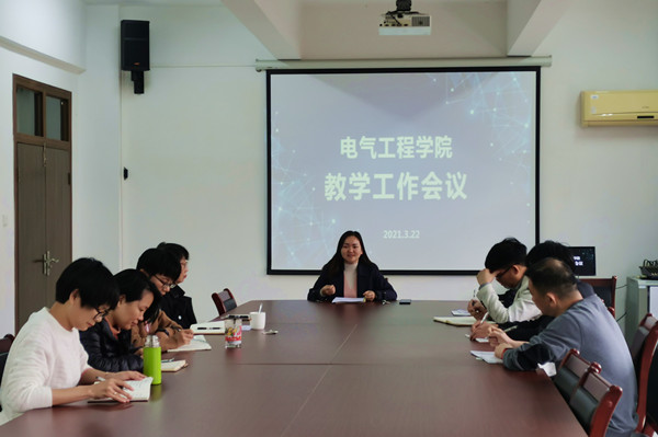 为稳步推进各项教学工作,确保工作有序进行,3月22日下午,电气工程学院在会议B6-403召开教学工作会议,该院副院长沈娜、各教研室负责人、教务员等参加了本次会议。会议由沈娜主持。