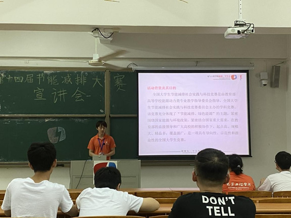节能减排、低碳发展是国家政策要求,也是社会发展的必然需要。为增强大学生的低碳环保意识,培养新时代大学生的科技创新能力,5月6日晚上19点,第十四届全国大学生节能减排大赛校内选拔赛宣讲会在A5-301举行。此次宣讲会由张正晗主持。