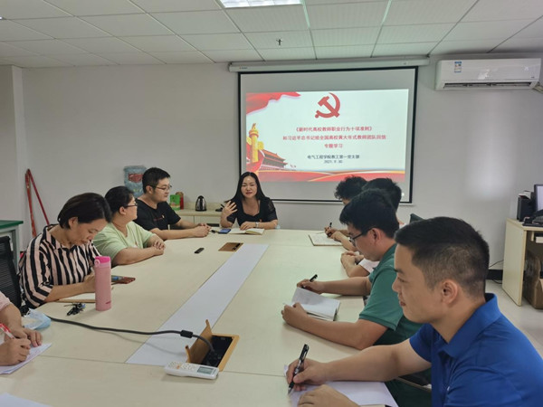 为加强高校教师师德师风建设,践行“四有”好老师,当好学生成长的引路人,9月30日下午,广州城市理工学院电气工程学院教工代表在B9-319开展师德建设专题学习会,会议由副院长沈娜主持。