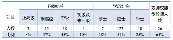 本专业现有专任教师40人,具有副高及以上职称18人,具有硕士及以上学位30人,所有教师均有电气工程相关专业背景,教师年龄、职称、学缘结构合理。专业注重师资队伍建设,教师具有良好的师德师风。为加强应用型人才培养,建设了一支既有较高理论水平又有丰富实践经验的双师双能型教师队伍,进一步提升本专业应用型人才培养质量。