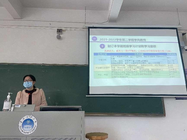 新学期第一周,学院各班级召开“开学第一课”主题班会,除了疫情防控、春季慢性疾病预防教育、防诈骗教育、心理健康教育之外,还重点从班级学情入手,根据学情分析报告,对上学期的班级总体情况进行了详细总结和分析,就上学期学生的不及格科目、学分绩点等进行说明,进一步明确自身定位,引导学生认真规划自己的学习和生活,制定切实可行的目标,养成良好的行为规范和积极的学习态度。