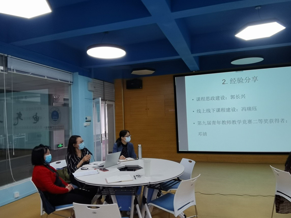 随后学院优秀教师代表进行经验分享。青年教师教学竞赛获奖者邓婧分享自己在第九届青年教师教学竞赛中的心得体会。她说到,青年教师的获奖不仅仅是一名教师的劳动成果,而是教师团队互相扶持的结果。随后,课程思政优秀教学案例教师郭长兴、混合教学优秀教师冯瑞珏先后分享自己经验。沈娜对三位教师代表表示肯定,并对全体教师提出建议,教学竞赛不仅能提高教师教学能力、增长见识,还能丰富自身阅历,希望老师们积极参与其中。