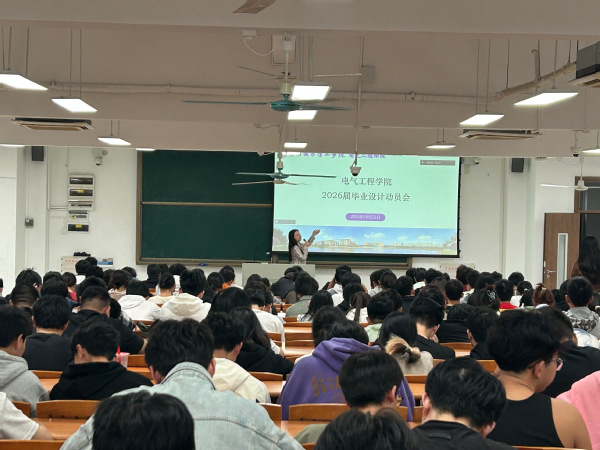 为扎实推进2026届毕业生毕业设计工作,引导学生准确把握毕业设计的任务与要求,电气工程学院于10月23日晚在A5-101教室组织召开2026届毕业设计动员大会。教学副院长沈娜主持会议,全体2026届毕业生及相关教师参加了本次会议。
