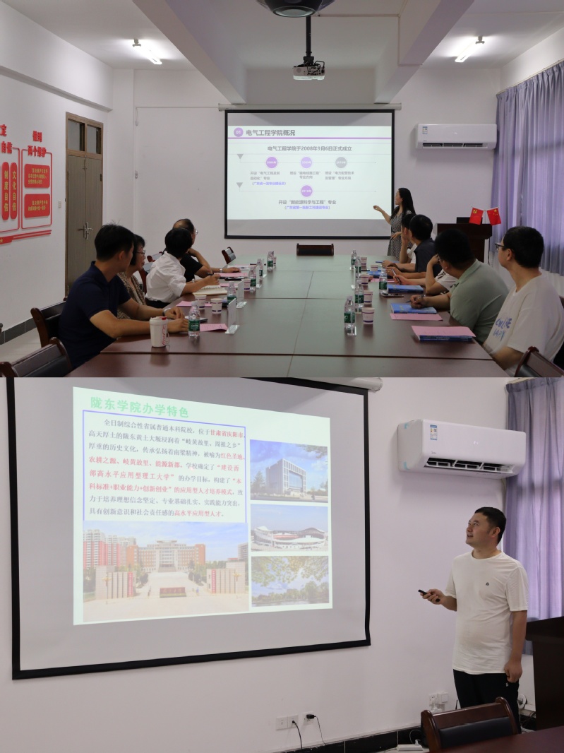 随后,陇东学院新能源学院副院长李彦举介绍了学院的办学历史、专业布局与育人成效。他表示,学院由原电气工程学院与能源工程学院整合组建,现设有物理学、电气工程及其自动化、新能源科学与工程等五个专业。学院立足“绿色低碳、智能高效”发展理念,持续深化新工科建设,打造“党建引领产教融合”品牌,与甘肃能化集团、国网甘肃省电力公司和庆阳供电公司等企业共建“智慧能源现代产业学院”,构建“产学研创赛”多维融合的育人体系,为区域能源产业发展提供有力人才支撑。