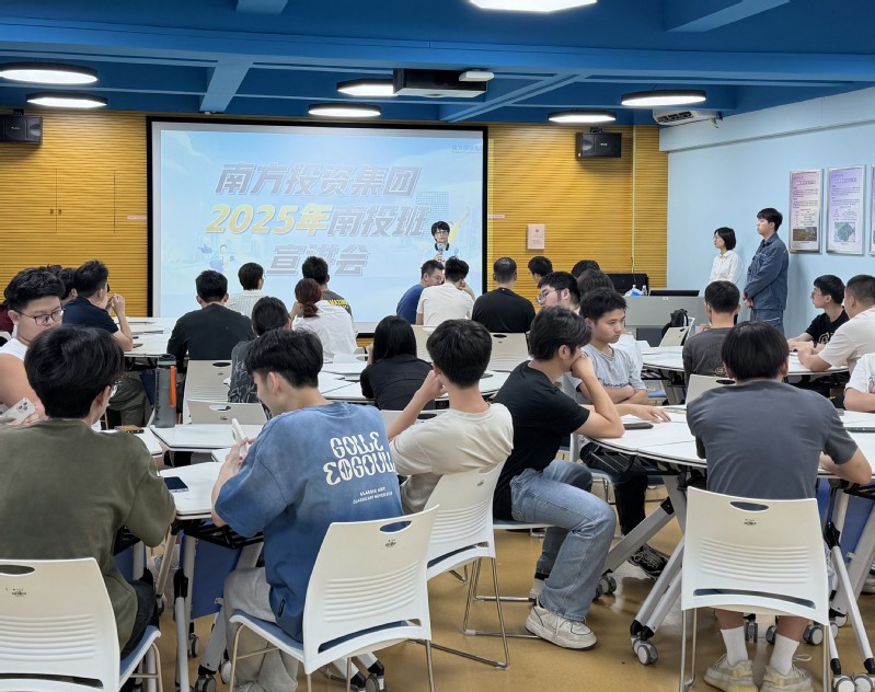 本网讯(记者 林奕丹 彭河平)为扎实推进“新能源与新型配电网现代产业学院”建设,进一步深化校企协同育人机制,电气工程学院与广州南方投资集团有限公司(以下简称“南投集团”)联合组建2025年“南投班”,于10月10日在B7-402举行项目宣讲会。南投集团人力资源部副主任邱敏谊等4人,学院党总支副书记符红勋、毕业班辅导员以及2026届意向毕业生共同参与宣讲会。