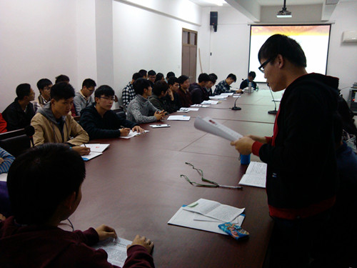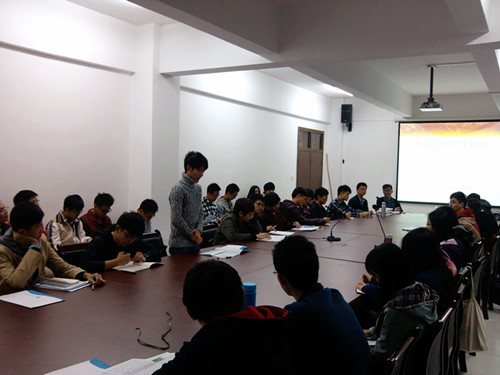 在与会同志与新发展的18名同志一起举拳宣读入党誓词后,学生第四党支部书记戴杰发表了讲话,他强调入党的新同志要进一步明确入党动机,要加强理论学习和专业学习,不断提高理论修养和自身修为,不但要做到组织上入党,思想上也要入党;新入党的同志们要认真思考群众座谈会给予的评价,要不断发扬优点、改进缺点,要以博大的胸怀和包容的心态看待群众和同志们的批评,不断完善自我、提升自我;学生党支部在发展壮大之后,要不断开动脑筋、集思广益,组织开展丰富多彩的党建活动,凸显党员先锋模范作用,在各方面争做表率。